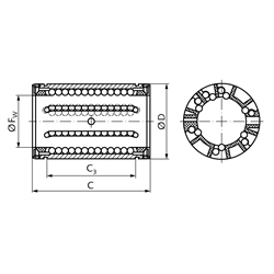 Stainless KB-3 linear bearings series 3 of ISO 10285 from premium brand in top quality. High load-bearing capacity, due to the asymmetric position of the rows of balls and the specially shaped raceway segments. These linear bearings can be fitted inside a closed or open housing and are thus adjustable.