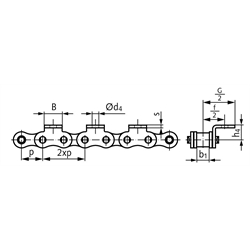 According to DIN ISO 606 (ex DIN 8187). Attachment distance 2 x p (attachment at every outer link). Other attachment distances can be supplied at short notice. Different attachment sizes and special chains on request. Connecting links K1 have to be ordered separately. * The marked dimensions are not listed in the DIN.