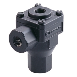 Materials: Housing and cover: Aluminium or zinc alloy. Seals: NBR. Medium: Compressed air, filtered, lubricated or non-lubricated. Mode of operation: Poppet valve. Mounting: In-line. Operating pressure: 0.5 to 10 bar. Operating temperature: 80°C max.. - enables air to be dumped quickly from air reservoirs and cylinders - allows higher cylinder speeds to be achieved.