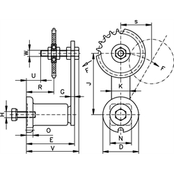 Material: Housing sintered steel or grey cast iron GG20, lever St52, sprocket made of steel. This tensioning element, a continually-tensioning torsion element, prolongs the service life of chain and belt drives by at least 30%, and radically reduces maintenance and repair work. The unique operating principle of this spring offers a long tensioning distance, especially as the lever can be pre-tensioned by up to 30° in both directions. The permanent torsion force does not only automatically compensate the chain elongation, the rubber mounted element also dampens vibrations and shocks in the entire drive. Other advantages: chain track adjustable, rubber suspension, adjustable at an angle of 360º, tensioning pressure steplessly adjustable from 'normal' to 'hard'. Can be used for both tensioning directions.