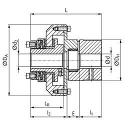 The slipping torque can be adjusted with common assembly tools for screws. The elastic coupling can be mounted in axial direction. Torque can be altered after mounting. By mounting a second disc spring, the torque range can be doubled (second spring has to be ordered separately). Customized bores and feather-key grooves and setscrew-threads available at extra charge. 1) above Ø 19 mm with flat keyway DIN 6885/3. * Essential for dimensioning. ** Nominal torque of the elastic coupling. *** Maximum torque of the elastic coupling.
