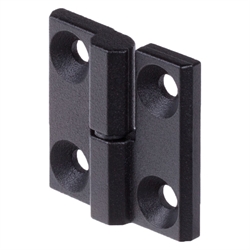 Detachable hinges with sliding disc from plastic. Before mounting, the pin should be lightly greased. With bores for countersunk screws DIN 7991.