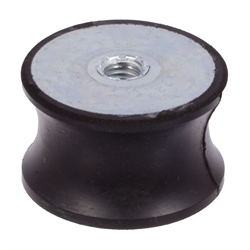Rubber-Metal buffers are simple, reasonably priced standard components used for elastic mounting. When shearing load occurs their load-bearing capacity is considerably lower than with pressure load. This has to be considered when horizontal mass forces or belt traction occur. The grade of rubber used has perfect physical properties. * Fperm. is the permissible static permanent load, which may be overlaid by a dynamic, alternating load. With shearing load please take care that no tension load in the rubber occurs at all during mounting. To achieve a sufficient fatigue strength provide some compressive pre-stressing. The stated permissible loads are only approximate, guideline values for the static load for "medium" rubber hardness. With particularly high, dynamic, alternating loads or high frequencies, the load figures have to be reduced accordingly. Temperature resistant up to 80°C.