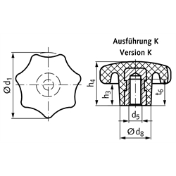 Version K: with threaded bush of zinc-plated steel. Size M4 with threaded bush made from brass.