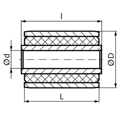 With medium-hard rubber, vulcanized at the inner bush and the outer bush. Good flexibility. Suitable for medium radial load and high axial load and high torsion. Load data +/-20%.