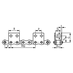 According to DIN ISO 606 (ex DIN 8187). Attachment distance 4 x p (attachment at every second outer link). Other attachment distances can be supplied at short notice. Different attachment sizes and special chains on request. Connecting links 11/E have to be ordered separately. * The marked dimensions are not listed in the DIN.