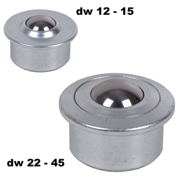 Medium duty ball transfer unit for medium high load. Orientation: Ball up or horizontal. From size 22 with felt seal and drain hole. Can be used with fixing clip. Conveying speed max. 1,5m/sec.