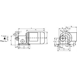 230/400V, 50Hz, IP54, isolation class F. Efficiency class: 90W IE1, 120W IE2. Can also be connected to alternating current using an operating capacitor. Motor and gearbox with roller bearings.