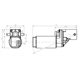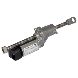 Housing: Motor: Steel, zinc-plated. Gearbox: Aluminium. Can be mounted in any position. Gearbox: Metal gears, trapezoidal thread nuts made from plastic. Bearing: Plain bearings. Lubrication: Spindle nut must be greased by the customer. Motor: DC motor 12 V or 24 V switching voltage, interference-free. Change the direction of rotation by switching the polarity. Protection class acc. to EN 60529: IP 20. Operating mode as per VDE 0530: S2. Universal use linear drives, e.g. for actuating devices. For Spindle Tr. 10 x 3 mm. The required spindle length depends on the required stroke length. The spindles have to be ordered separately. Mounting eye and stop block for spindle ends are included with the linear drive.