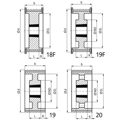 Taper-bushings are available for varios shaft diameters and have to be ordered seperately.