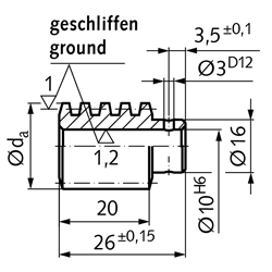 Material: Steel 11SMn30 (1.0715), inspected for fissures, case hardened HV 620-700, ground. Pressure angle 15°. The worms can only be used with gear wheels having the same centre distance and the same transmission. Can be built into gear systems, no reworking required, thus short assembly times. The figures stated for the efficiency are only reference values, since - besides the lead angle - also mounting, lubrication, speed and assembly have an influence on the efficiency.