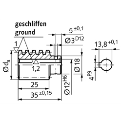 Material: Steel 11SMn30 (1.0715), inspected for fissures, case hardened HV 620-700, ground. Pressure angle 15°. The worms can only be used with gear wheels having the same centre distance and the same transmission. Can be built into gear systems, no reworking required, thus short assembly times. The figures stated for the efficiency are only reference values, since - besides the lead angle - also mounting, lubrication, speed and assembly have an influence on the efficiency.