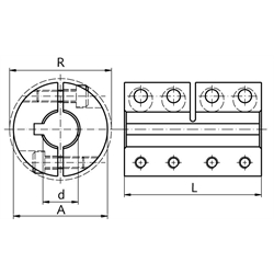 Material: Steel C45 burnished. Temperature range from -40°C to +175°C. Maximum speed 4000 rpm. The screws DIN 912 - 12.9 used in all couplings are covered with a layer of polyamide. Thus the bolts do not loosen with vibrations Bore tolerance: +0,051 mm. Feather Key Groove DIN 6885/1, Tolerance P9. The torques in the table are maximum values which can only be achieved with perfect mounting and dimensional accuracy of the shaft.