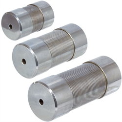 Material: Hubs 11 SMn Pb 37, from Ø 55 mm CK45. Spring: Spring steel type C. These couplings are elastic all-metal couplings and completely maintenance free. The all-metal design leads to a strong resistance against oil and higher temperatures: -40°C to +100°C. The elastic part consists of a spring body, made up of three layers of wound springs welded into the connecting hubs. The couplings are suitable for both rotating directions. They can be locked against rotation with a feather key or with pins. The couplings are pressfitted. Demounting is done by pressing or pulling off. Vibrations and shocks are largely absorbed. Depending on the length of the coupling - S, L or Db - bending of 3 - 6° or axial displacement of 3 - 6% of the nominal shaft diametre are possible. Couplings are available pre-drilled ex stock. Customized bores and feather-key grooves available at surcharge.