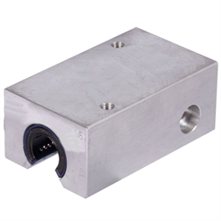 Material: Housing made from extruded aluminium with two open linear bearings of the ISO Series 3 from premium brand in top quality, with self-aligning capability that accommodates tilting and double-lip seals. Lubricated ready-to-install. Recommended shaft tolerance h6. Spare linear bearing (that accommodates tilting) on request. * when mounting from the bottom side choose the next smaller screw size.