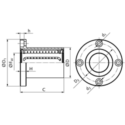The linear ball bearings are suitable for screwing onto components. Via the four mounting holes, the linear bearings can be mounted directly e. g. in machines.This ensures easy mounting and interchangeability.