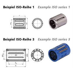 In DIN ISO 10285, the boundary dimensions, tolerances and terms of sleeve type linear ball bearings are described in the series 1, 3 and 5.