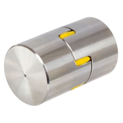 Material: Hubs of coupling: 1.4305, AISI 303 (1.4571, AISI 316 Ti on request). Spider: Polyurethane, Shore hardness 92°A. Spare spiders either 92°A or 98°A or 64°D Shore. The couplings are available without bore or pre-drilled ex stock. Custom bores or feather keyways available at extra charge. Temperature range: -20°C to +80°C. * B is the avarage dimension by which, e.g., a driven or driving machine has to be moved in order to demount one of the coupled units in vertical direction. Weights refer to max. customized bore without keyways.