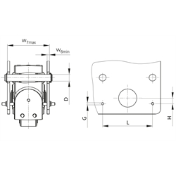 Material: Steel Consisting of: two pins, washers and retaining rings, threaded adjusting pins and nuts for lateral alignment and fixation. Two sizes for travel-wheel system size 200 or 250. The pin connection set is used to mount the travel-wheel system into an existing hollow section when mounted from the side. One set required for each travel-wheel system.