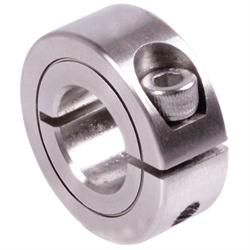 Features: does not damage the shaft, stronger clamping force than with set collars, even distribution of clamping forces, easy readjustment, precise bores in inch size. The threads of the metric screws DIN 912 are covered with a layer of polyamide. Tolerance b: +0.08 mm -0.25 mm. Temperature range: -40ºC to +175ºC.